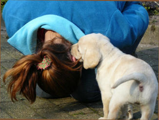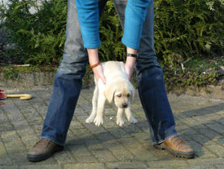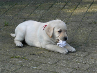 Bij ons krijgen de pups op de leeftijd van 7 weken een karakter test.