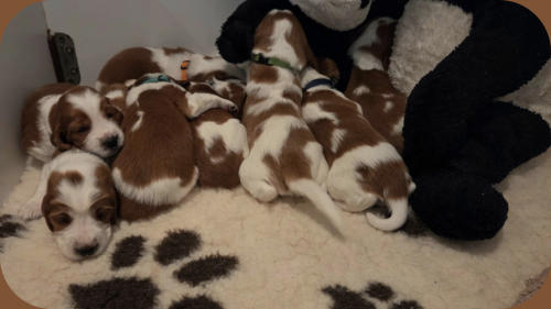 zaterdag 06-09- 2025 is onze Kelly bevallen van 8 pups wat heeft onze dame het goed gedaan super trots op haar en ze doet het heel goed als moederop deze pagina kunnen jullie alles volgen over moeder en pups voor 1 reu zoeken wij nog een leuke baasje !!